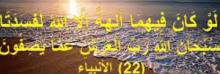 «اگرخداياني غير از الله ميبودند، آسمانها و زمين فاسد شده بود. ولي آسمانها و زمين فاسد نشدهاند؛ پس جز ذات الله هيچ خداي ديگري در عالم وجود ندارد».
