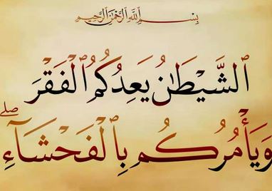 «الشَّيْطانُ يَعِدُكُمُ الْفَقْرَ وَ يَأْمُرُكُمْ بِالْفَحْشاء وَ اللَّهُ يَعِدُكُمْ مَغْفِرَةً مِنْهُ وَ فَضْلا؛ شیطان شما را از فقر (و مشکلات) می ترساند و به گناه دستور میدهد. ولی خدا شما را به بخشش و فضل خود وعده می دهد.»(2)